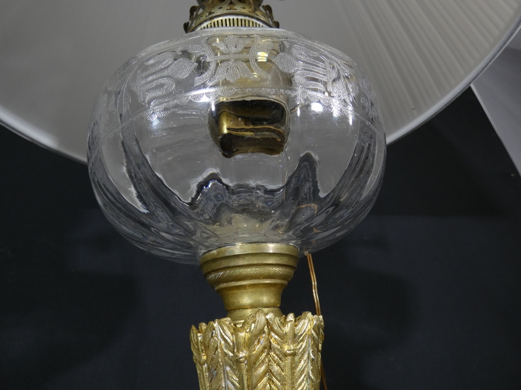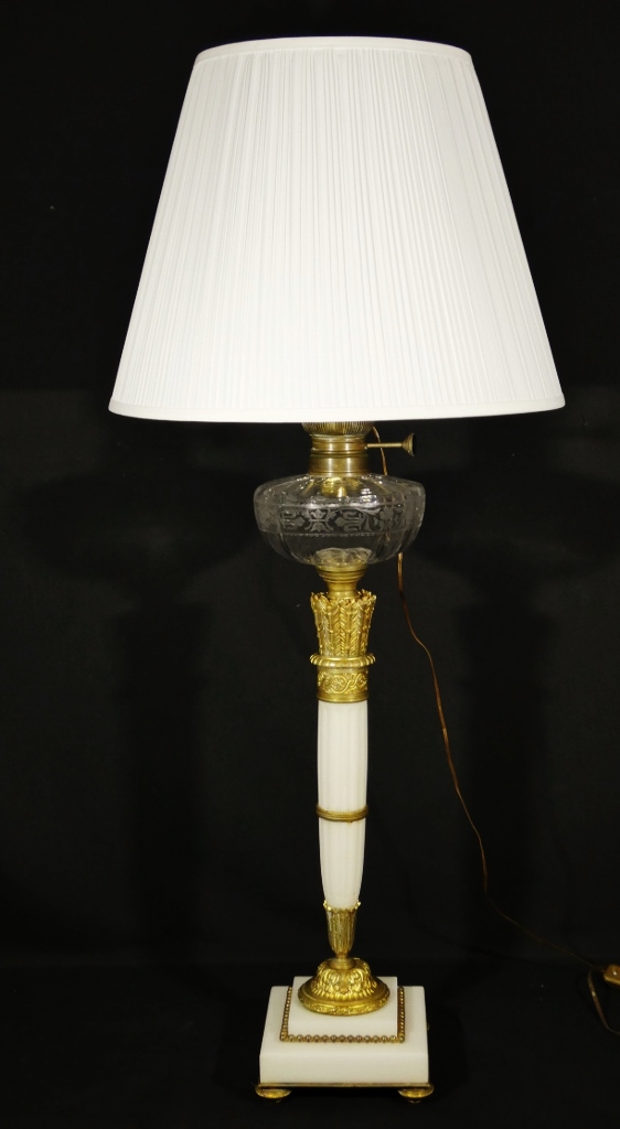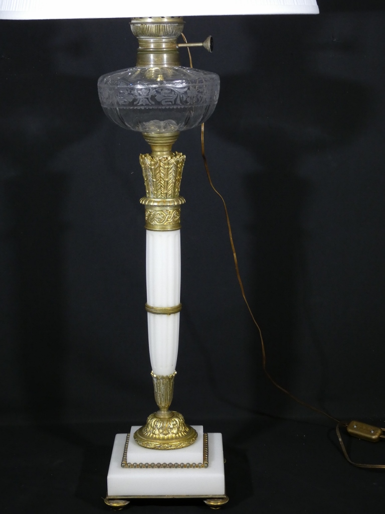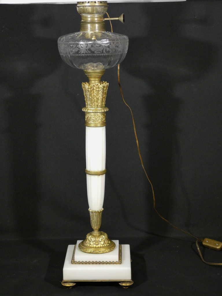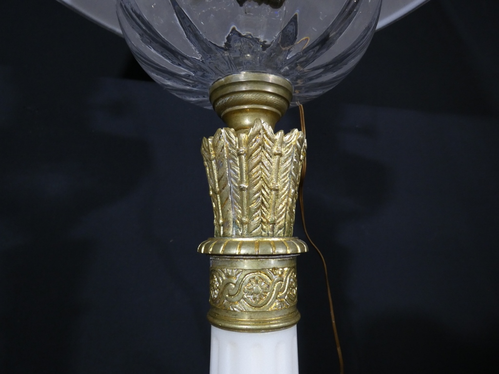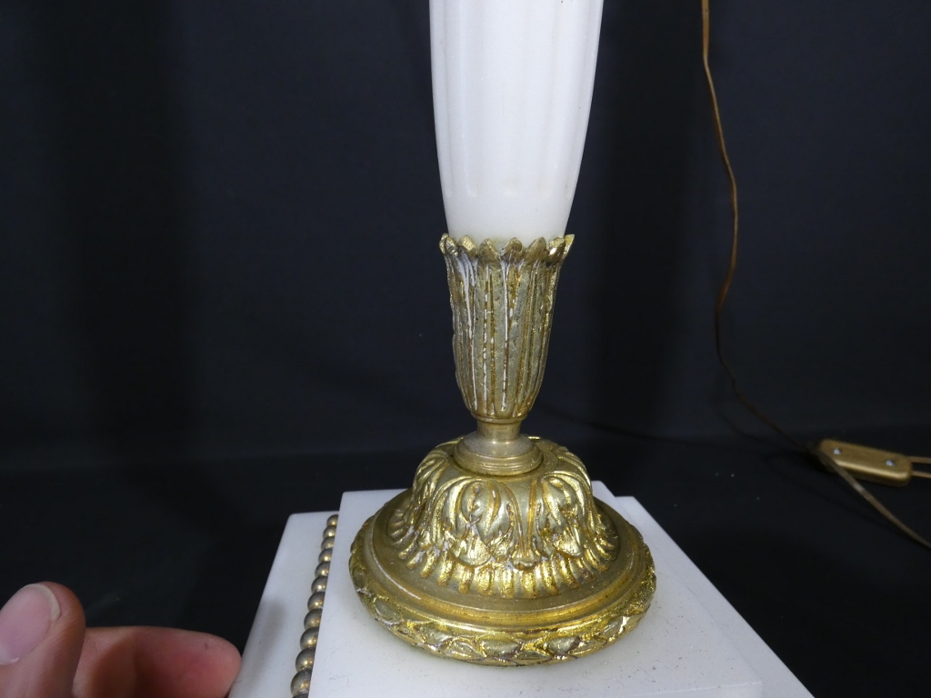 Très grande lampe de style Louis XVI en marbre blanc et bronze doré.