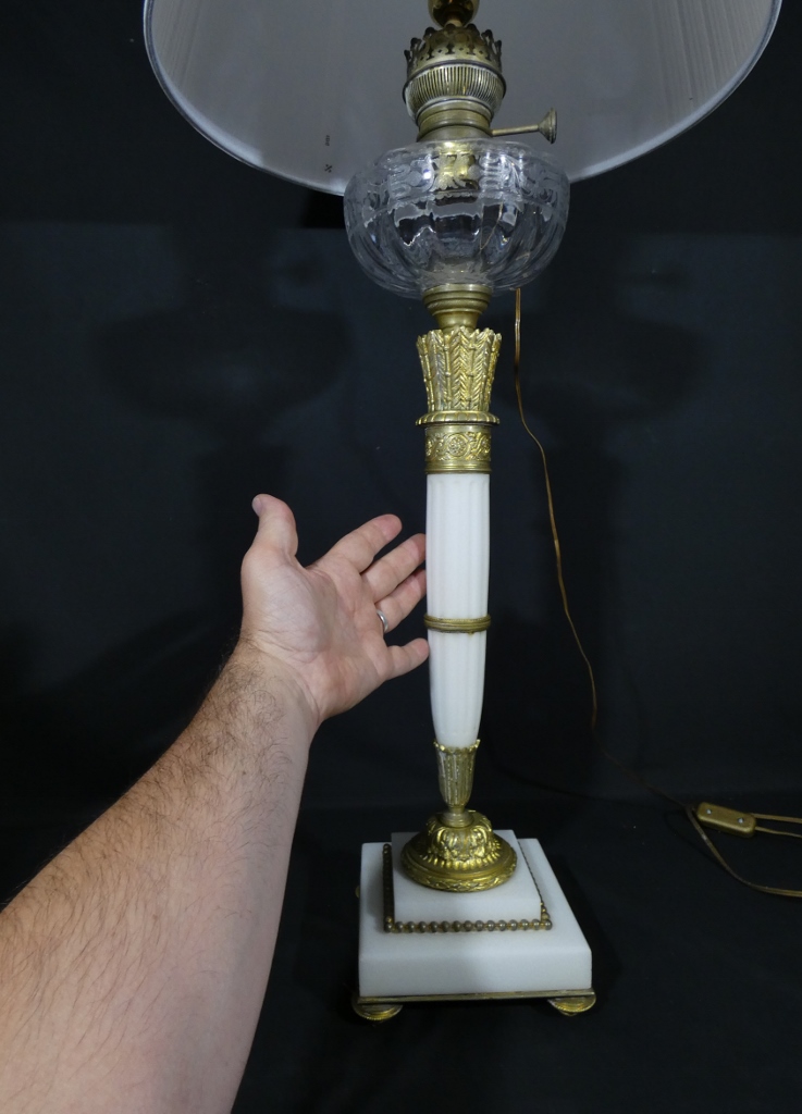 Très grande lampe de style Louis XVI en marbre et bronze, époque XIX ème