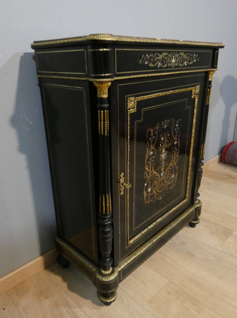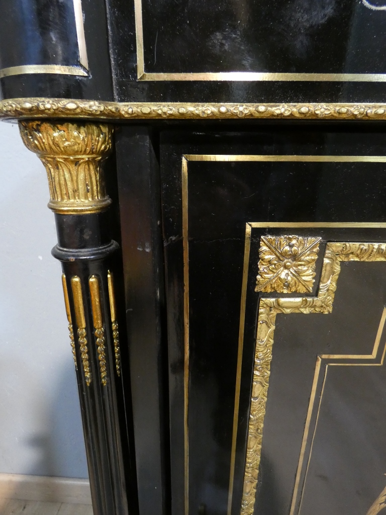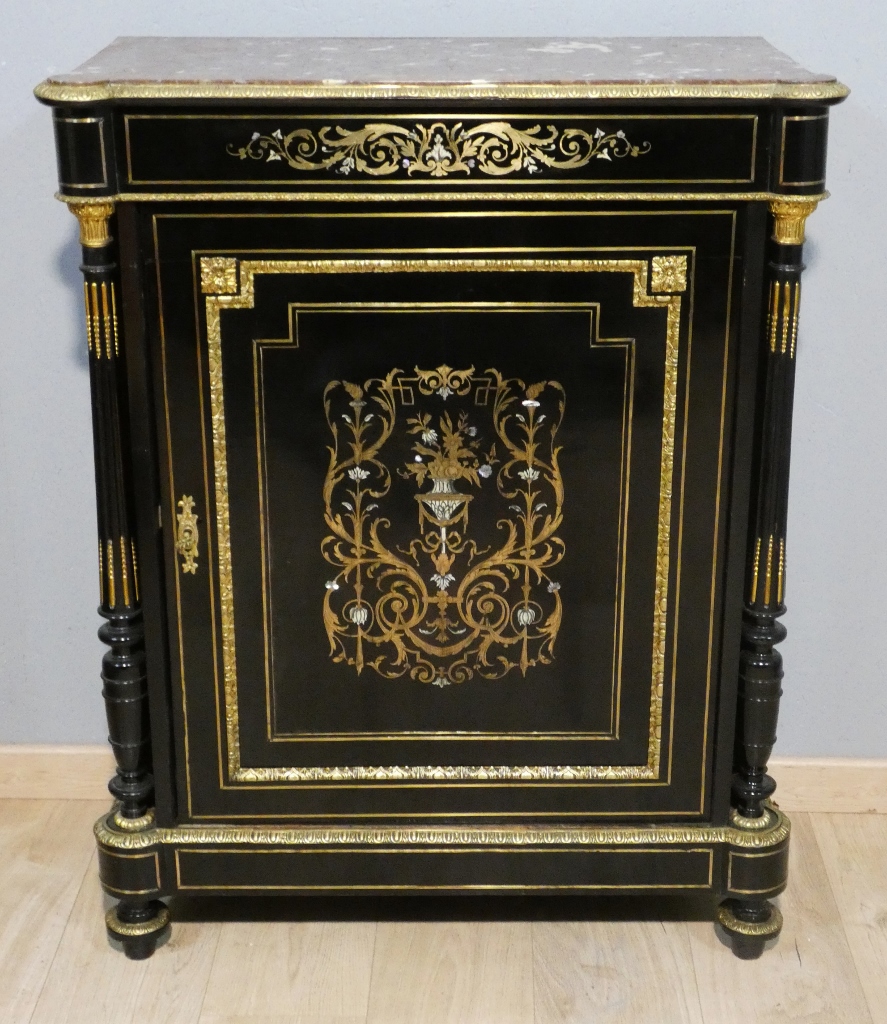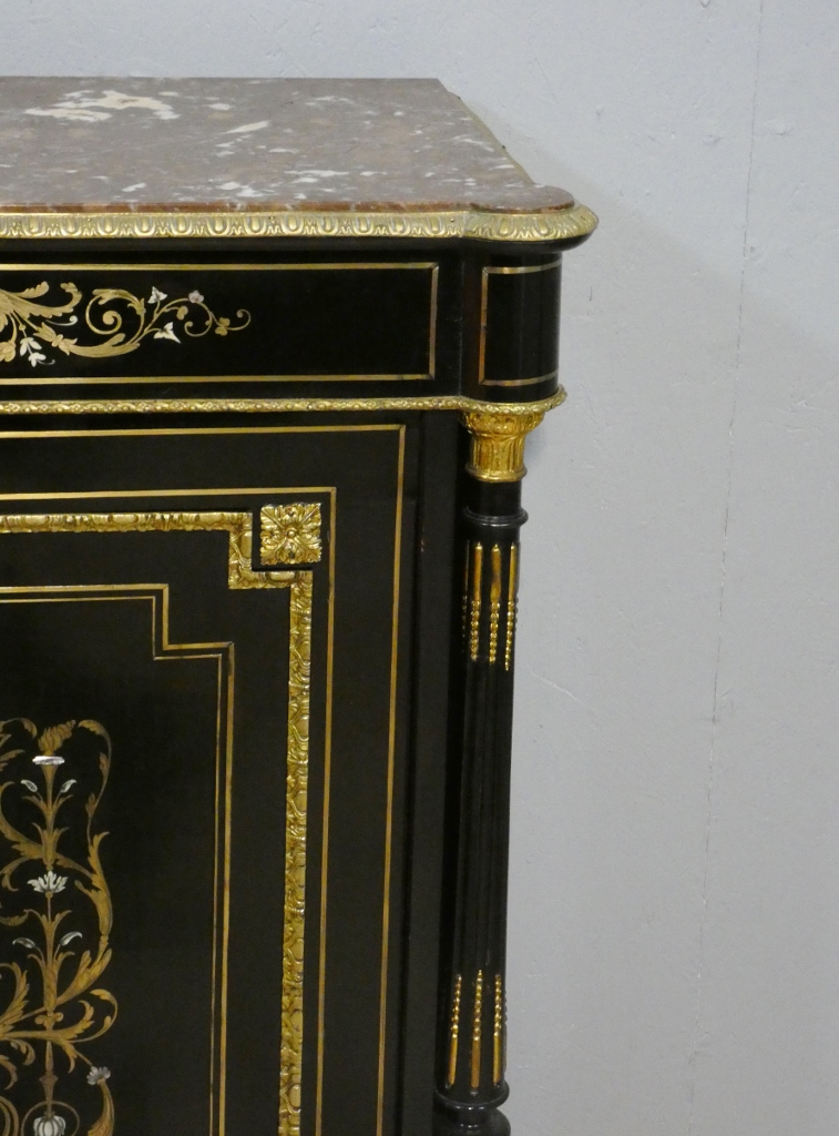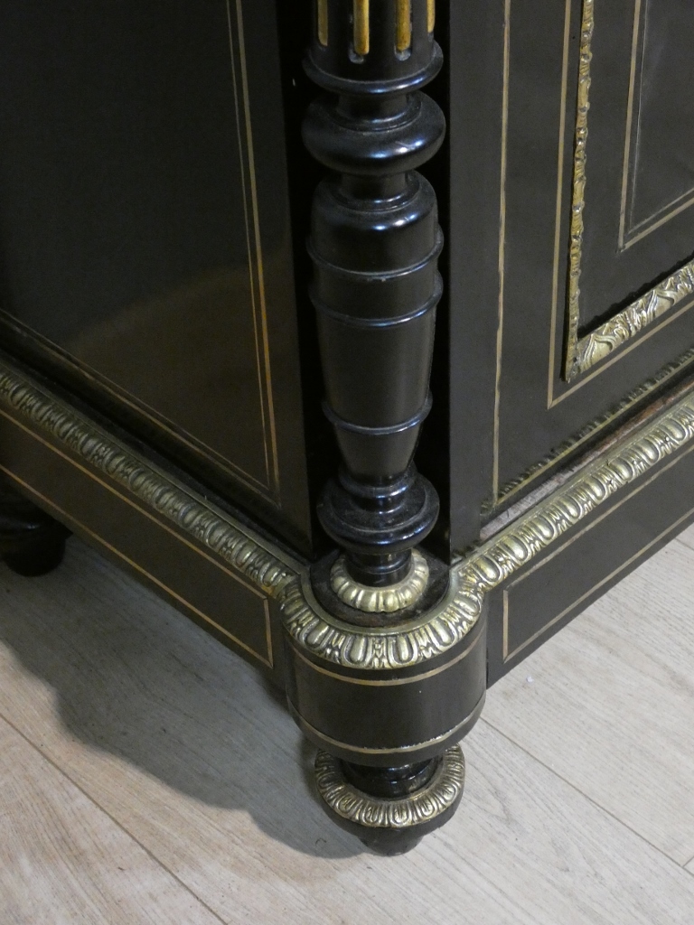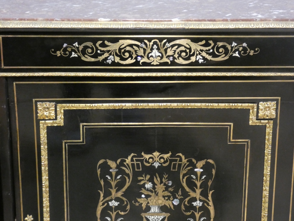 Buffet à hauteur d’appui Napoléon III en bois noirci, marqueterie de laiton, nacre et os, XIX è