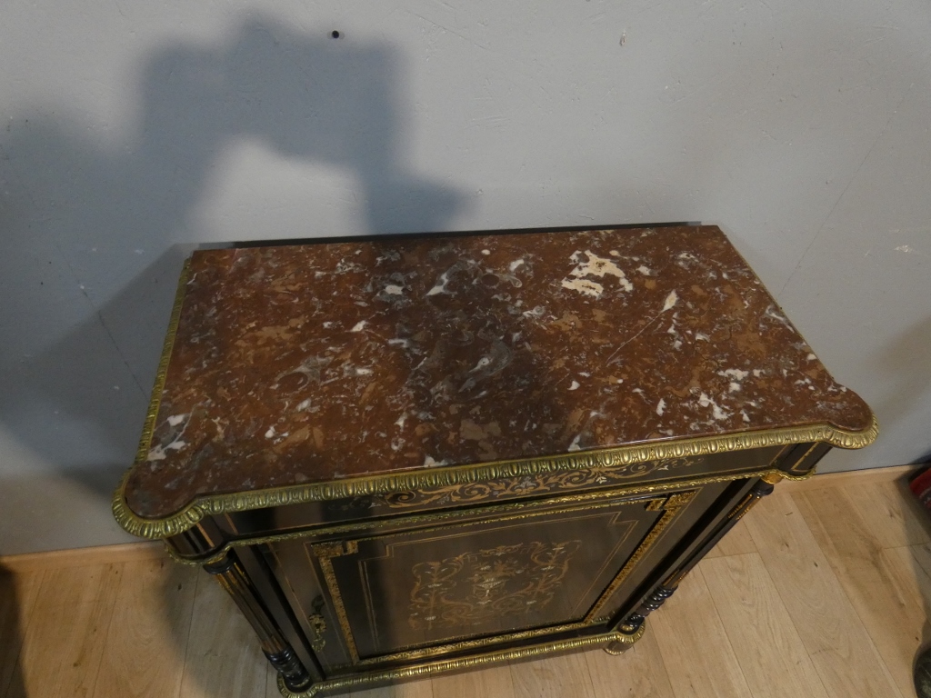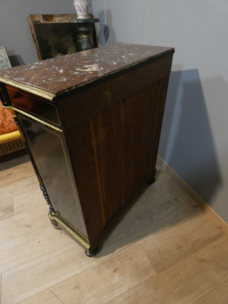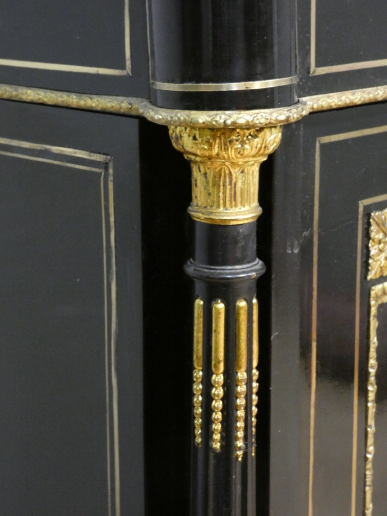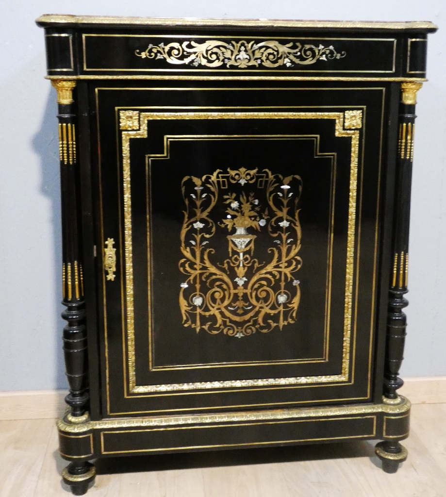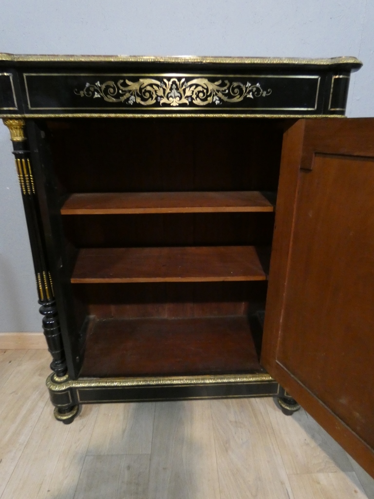 Buffet à hauteur d’appui Napoléon III en bois noirci, marqueterie de laiton, nacre et os, XIX è