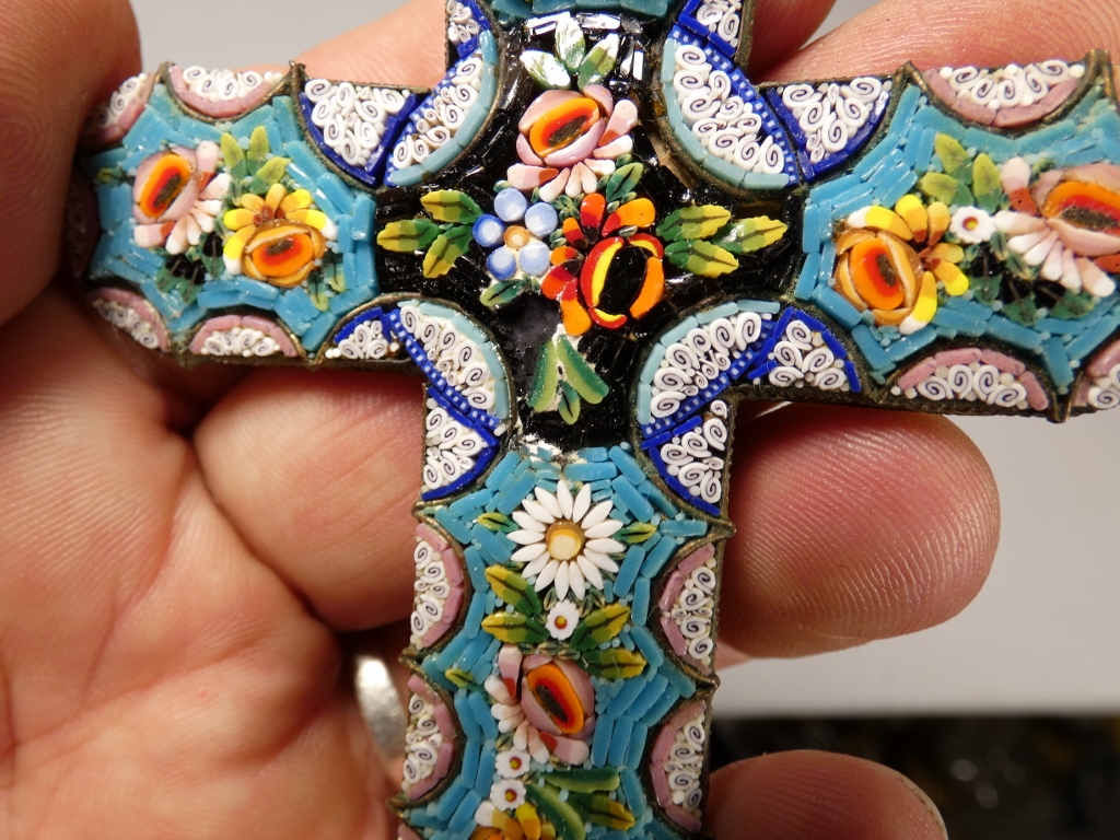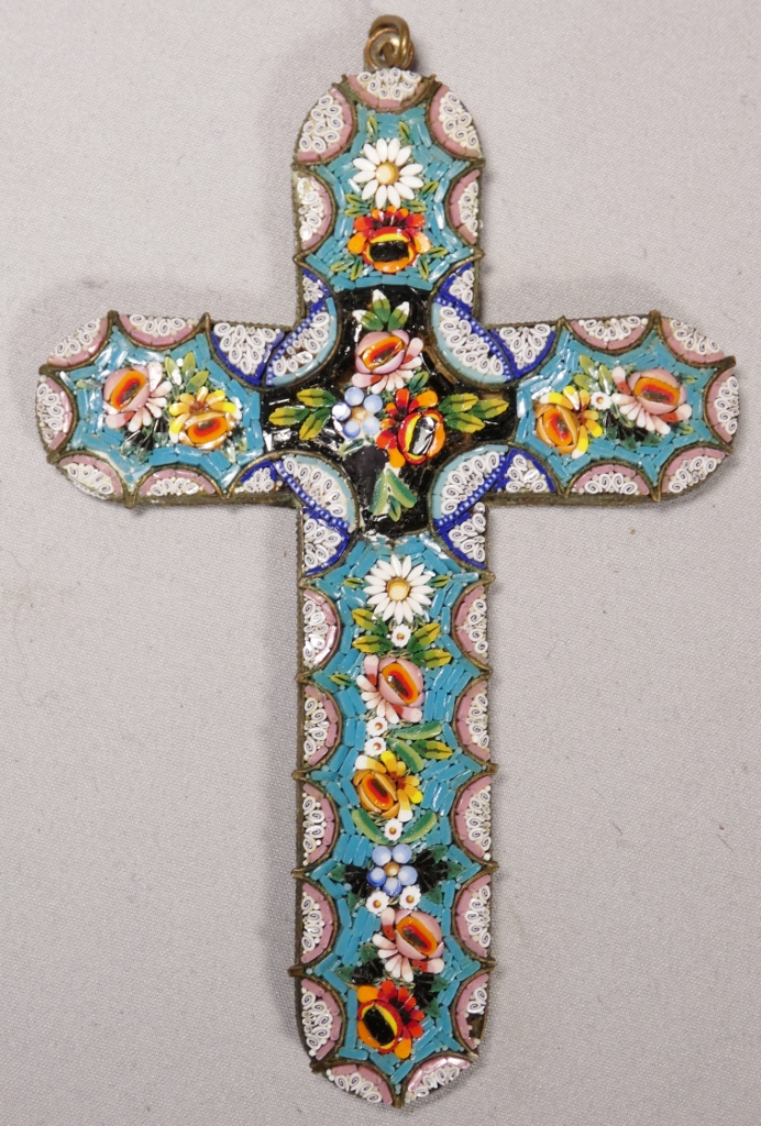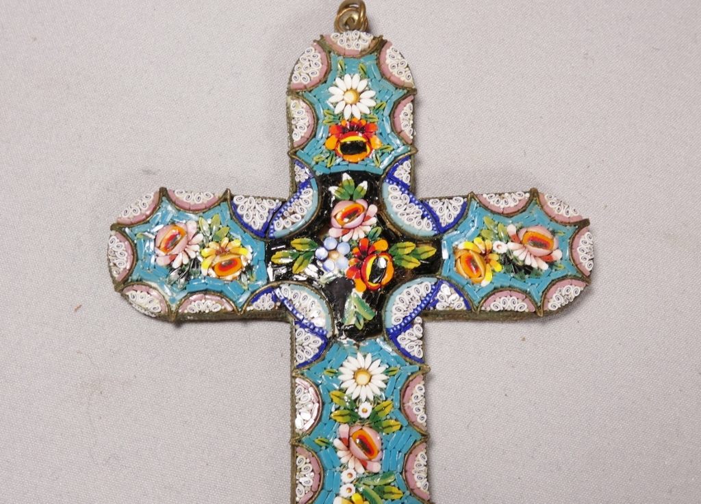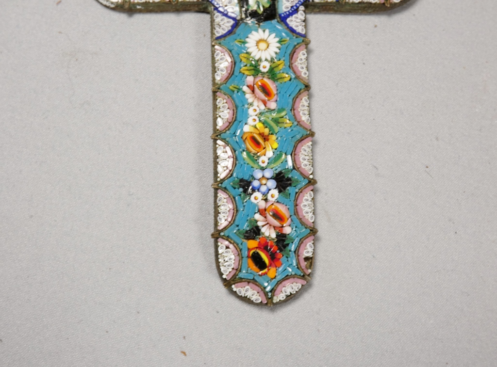 Croix en micromosaïque de fleurs, souvenir du Grand Tour, XIX ème
