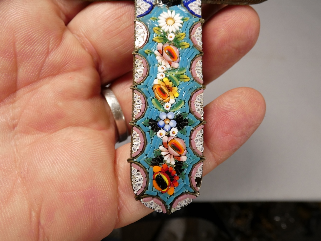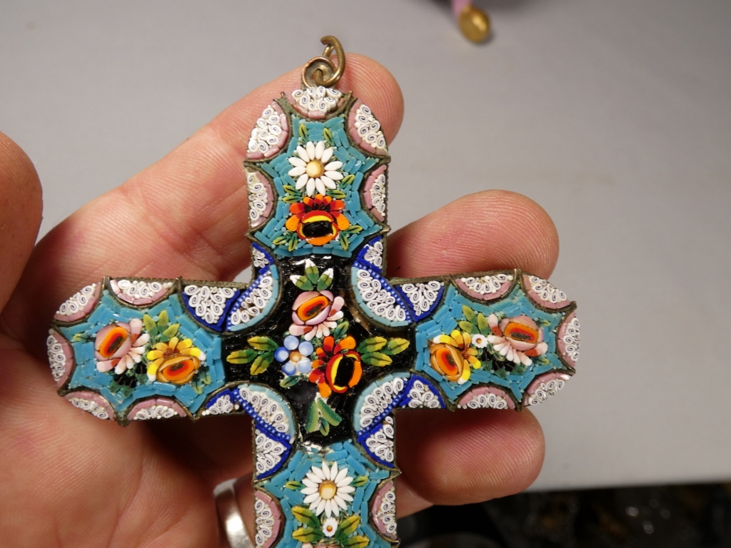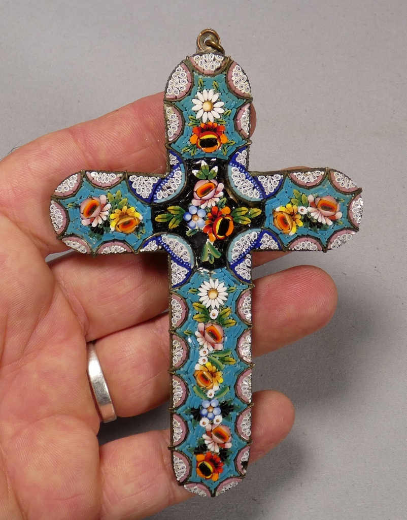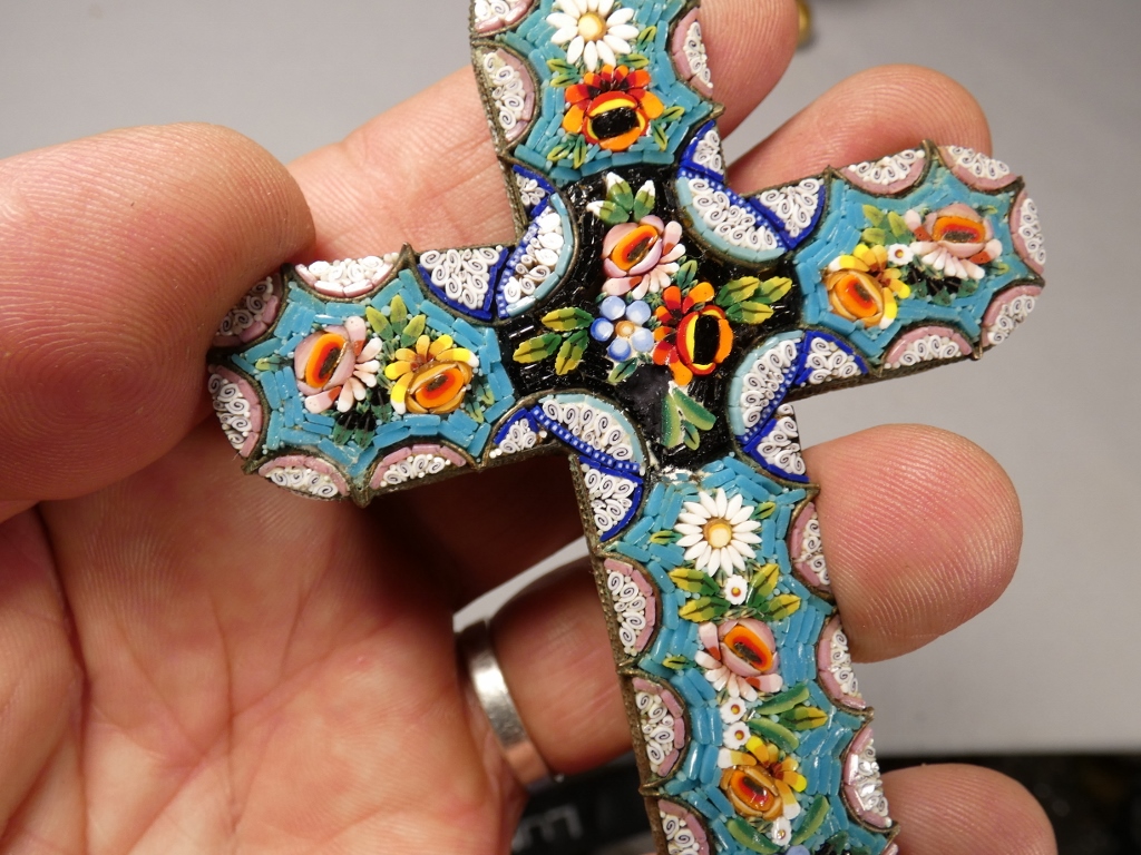 Croix en micromosaïque de fleurs, souvenir du Grand Tour, XIX ème