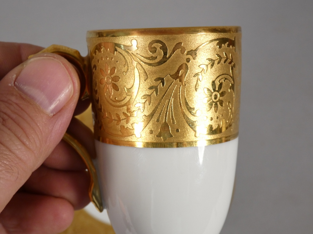 Incrustation d’or, tasse de collection en porcelaine de Limoges