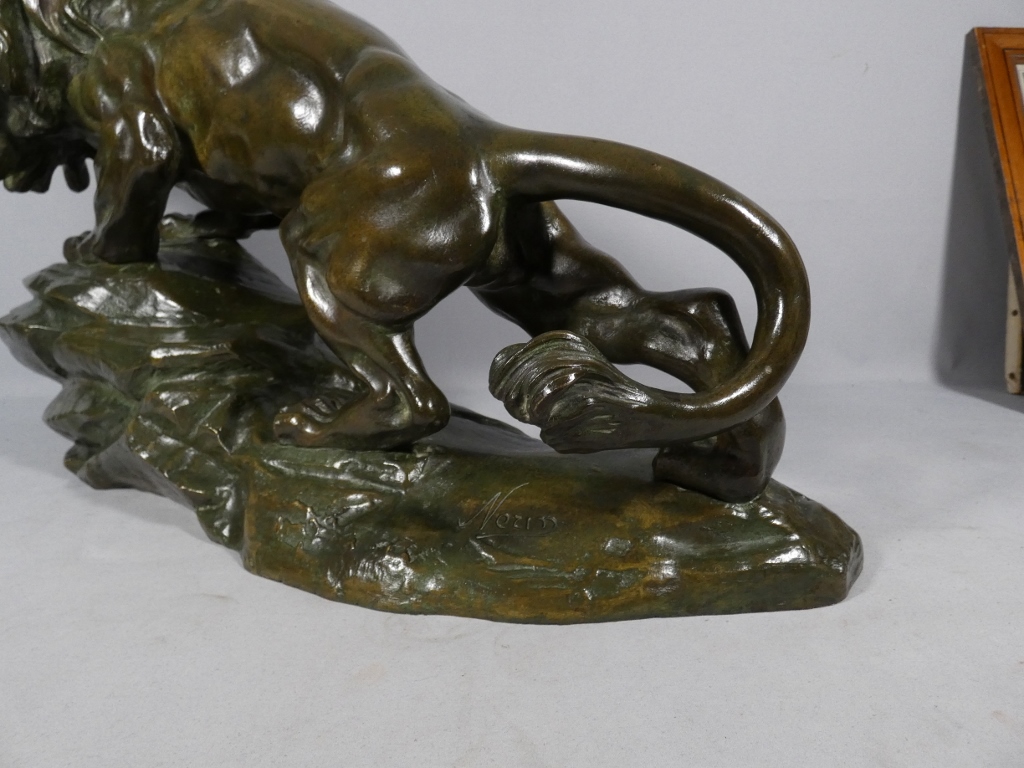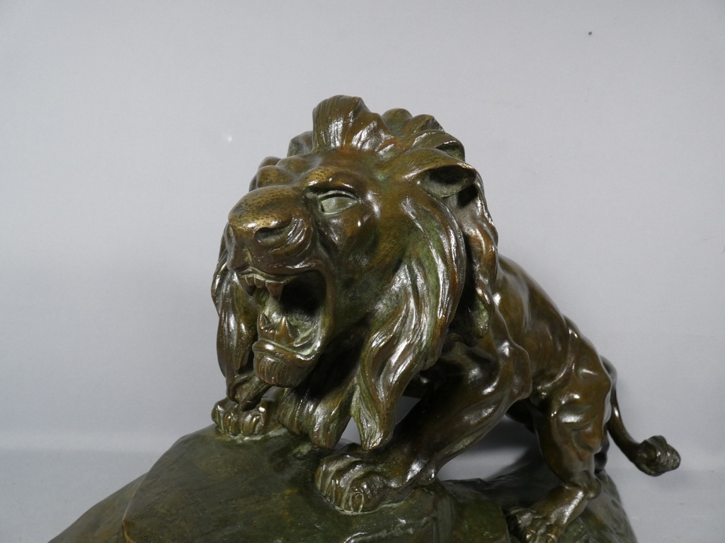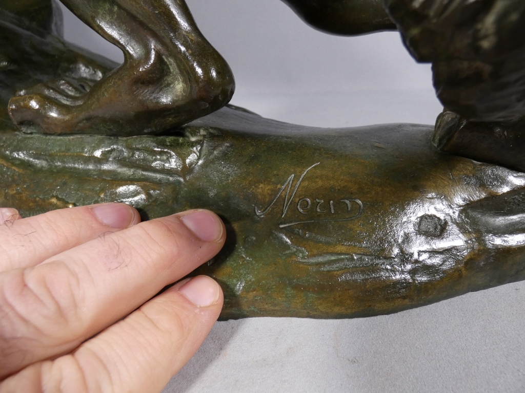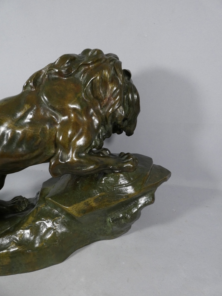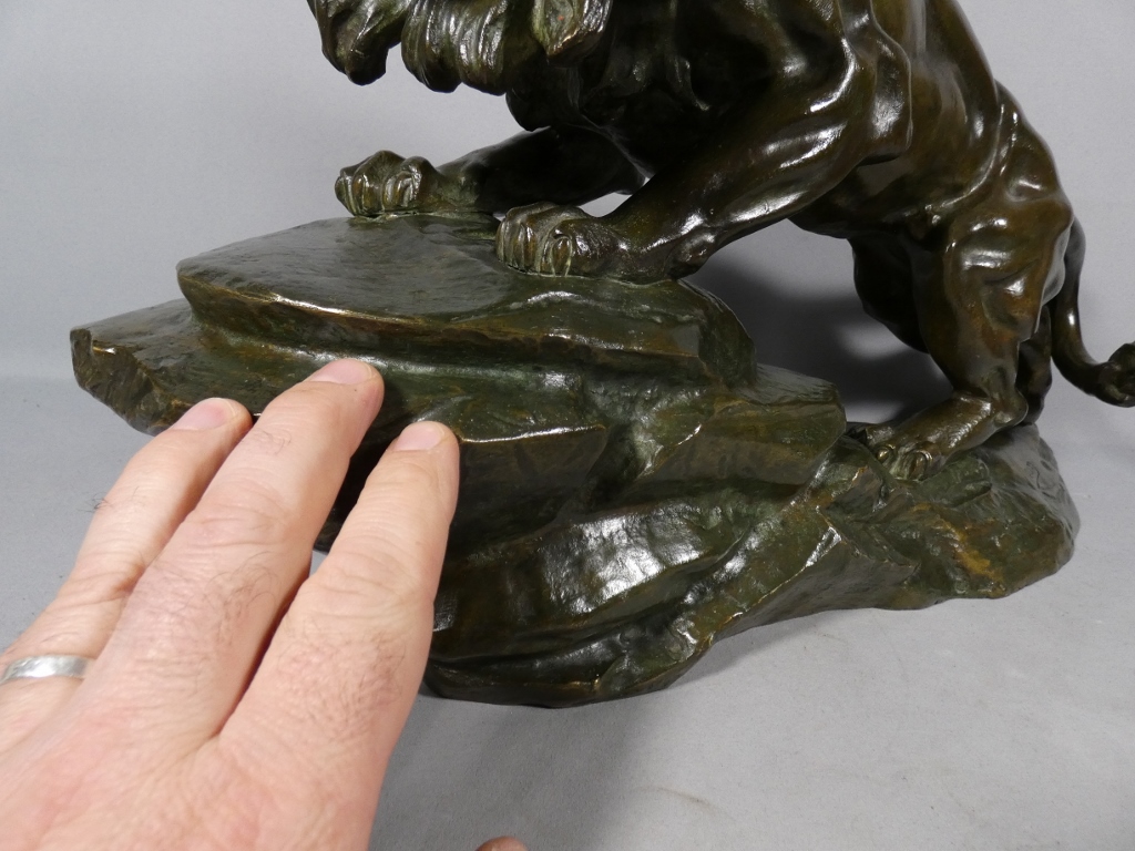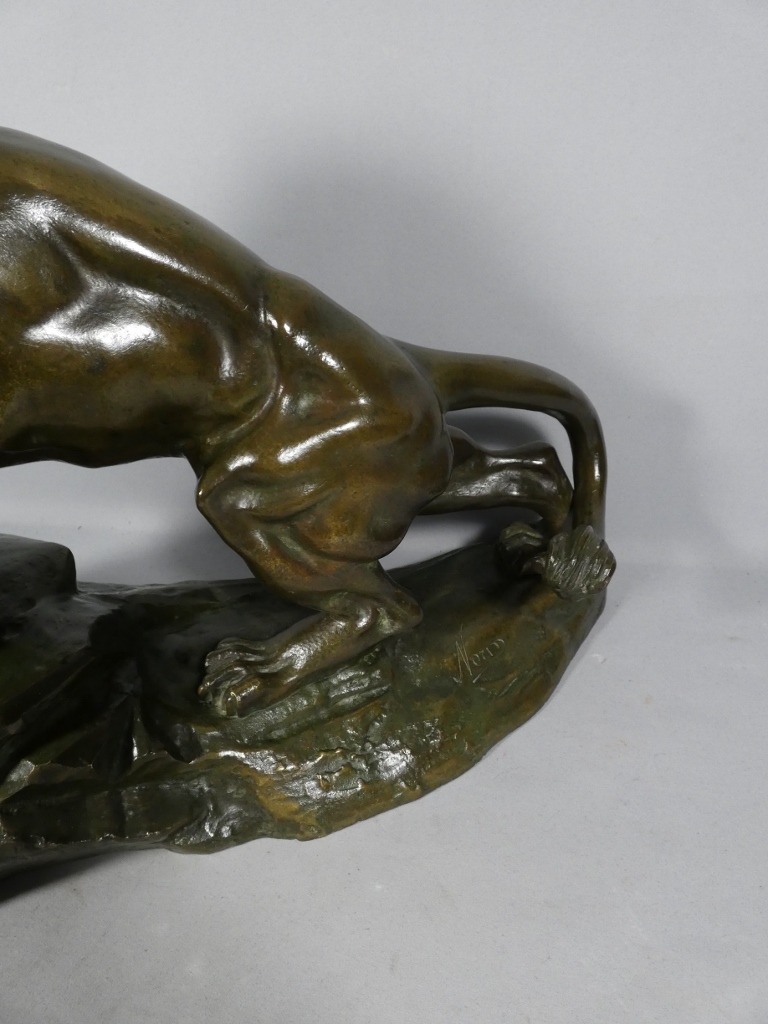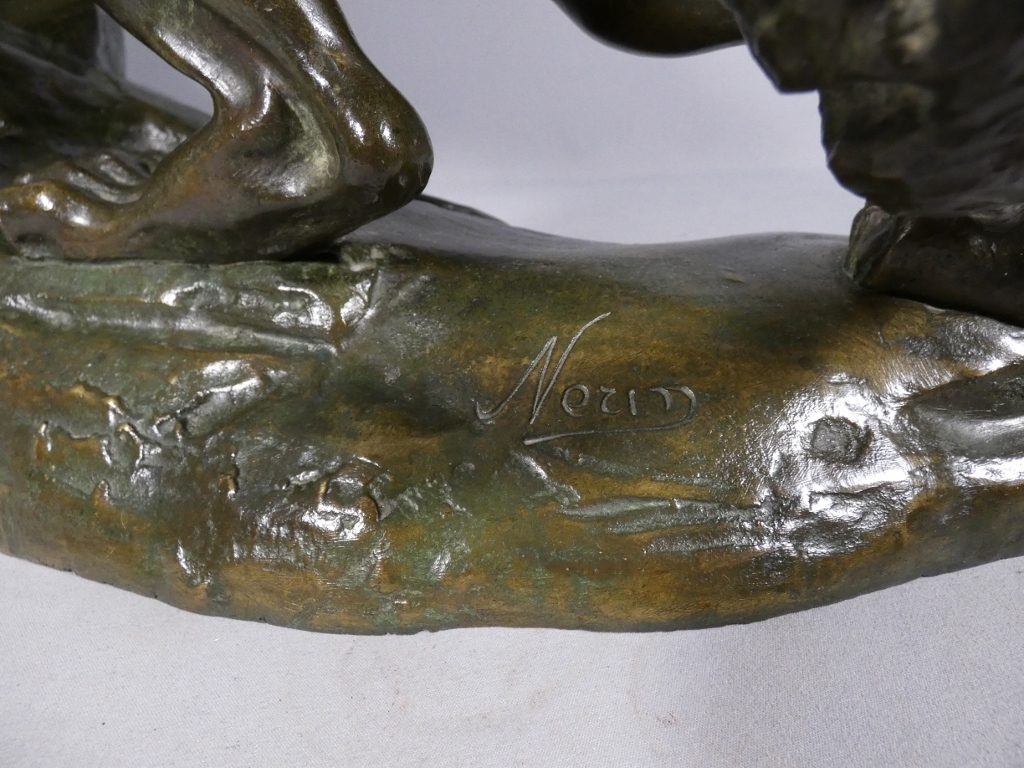 Le lion, grand bronze animalier signé Nérin, époque début XX ème