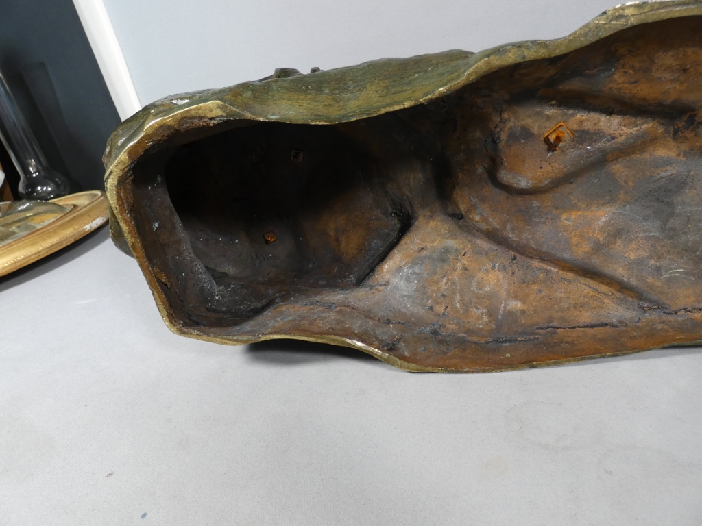 Il s’agit d’une oeuvre en bronze patiné nuancé vert brun.