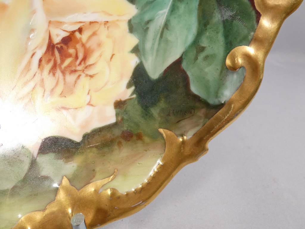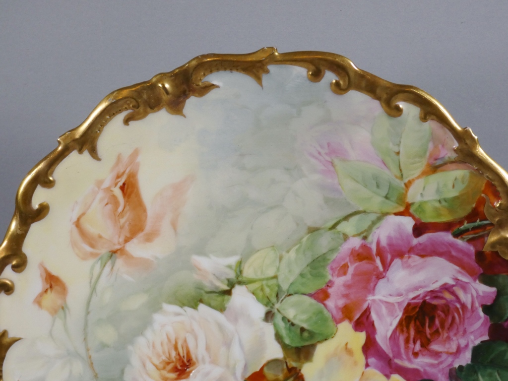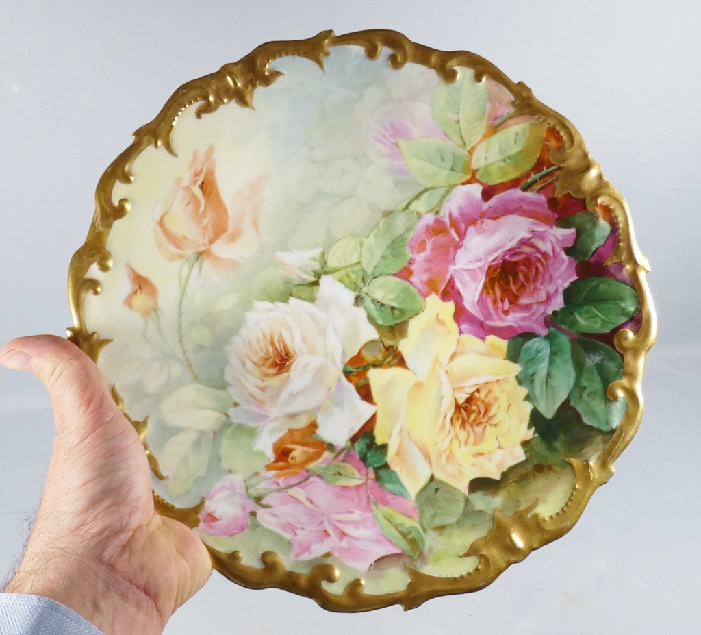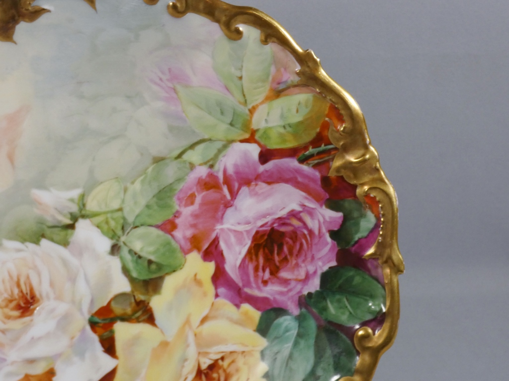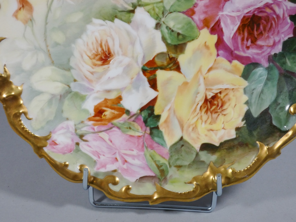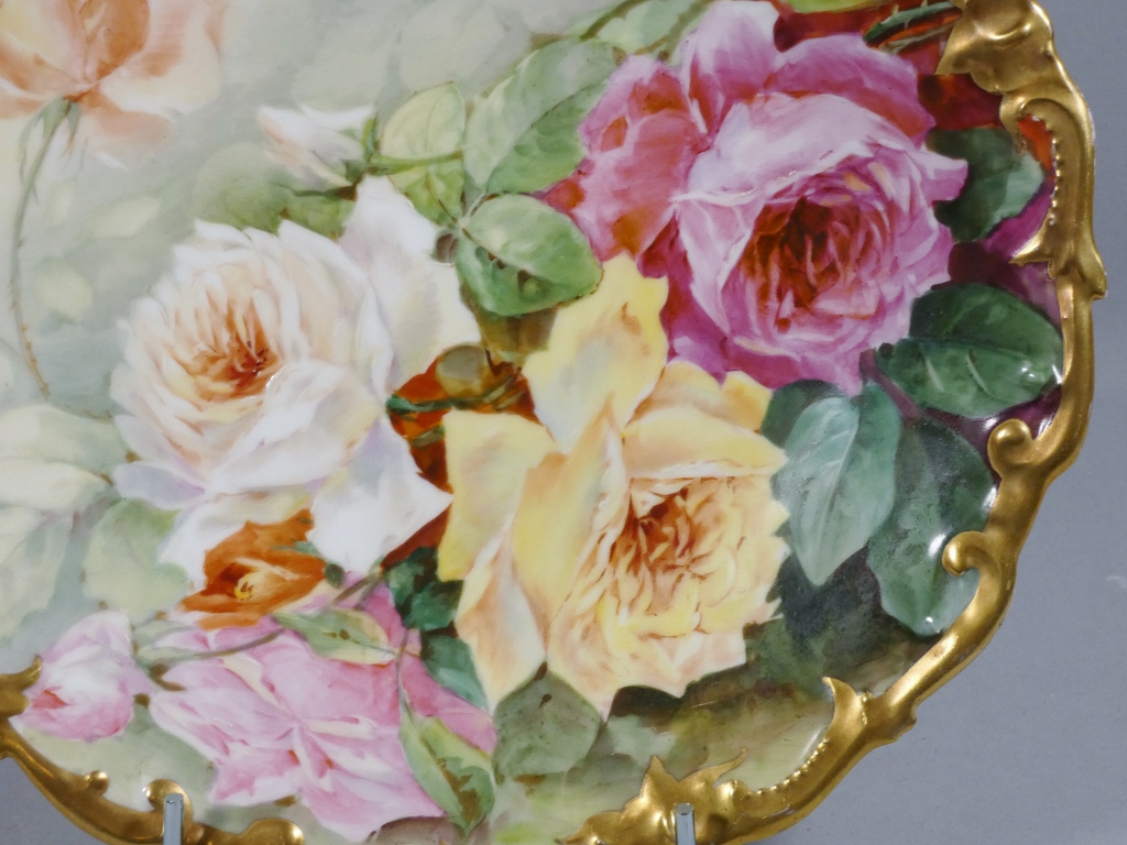 Les roses, plat décoratif en porcelaine de Limoges peint main, époque début XX ème