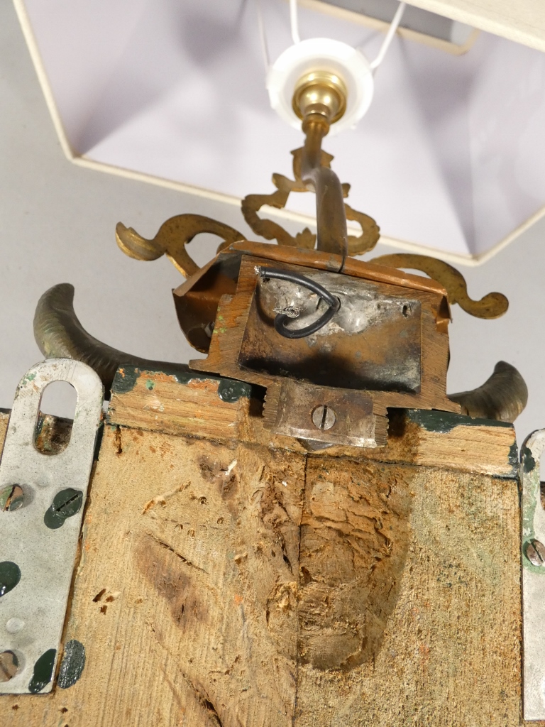 Très originale paire d’appliques de style Napoléon III en bois et bronze.