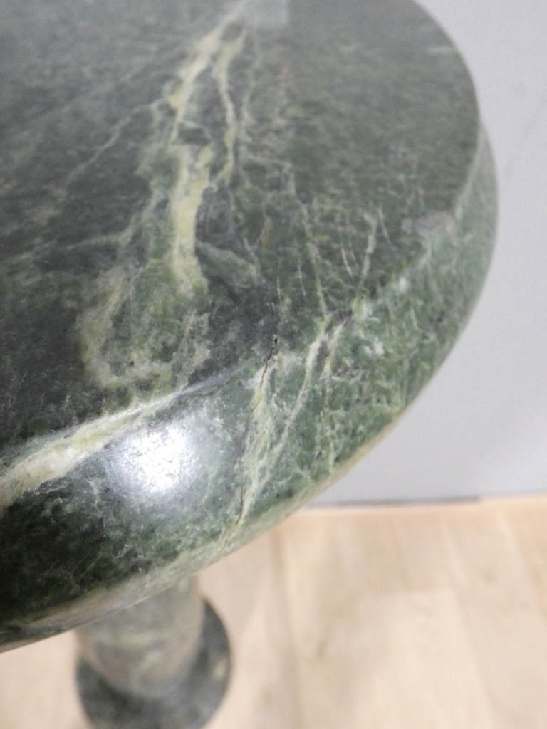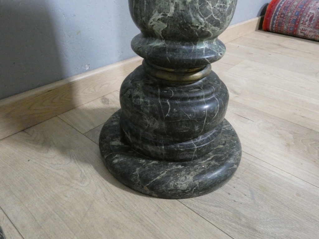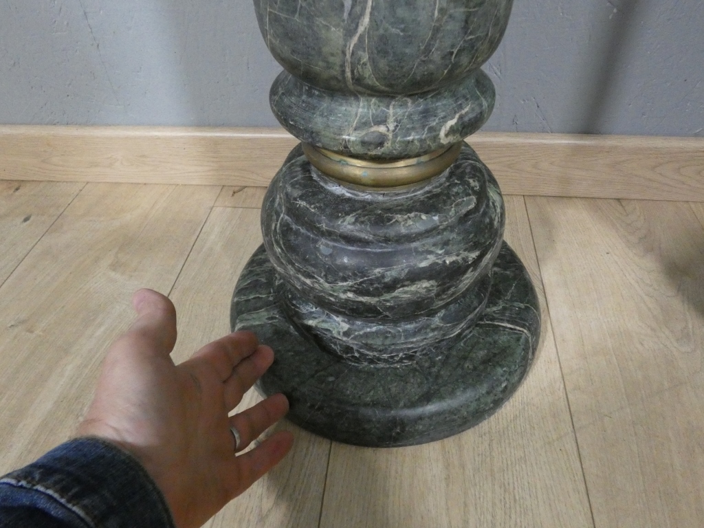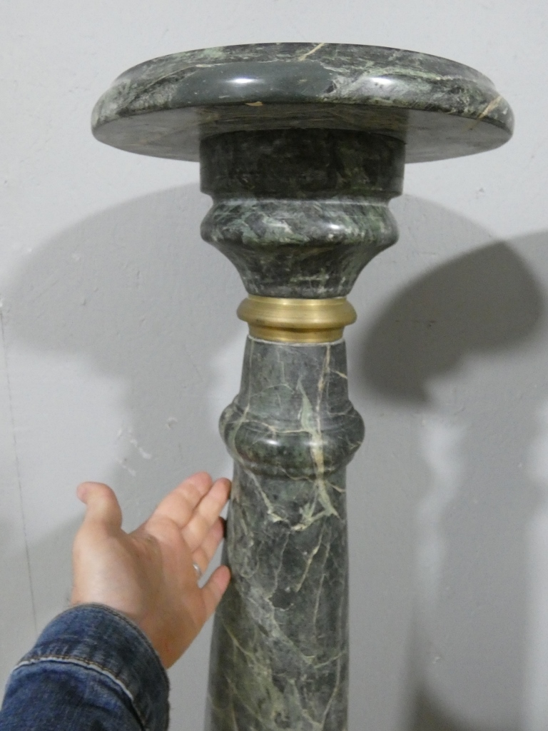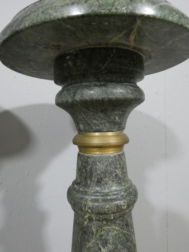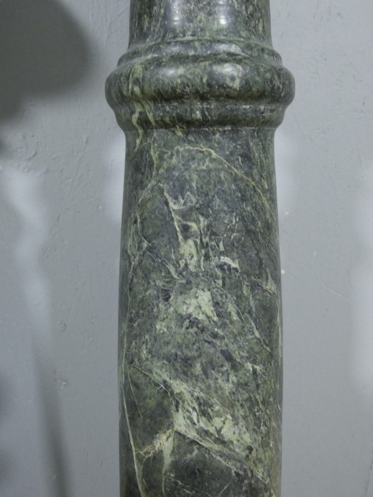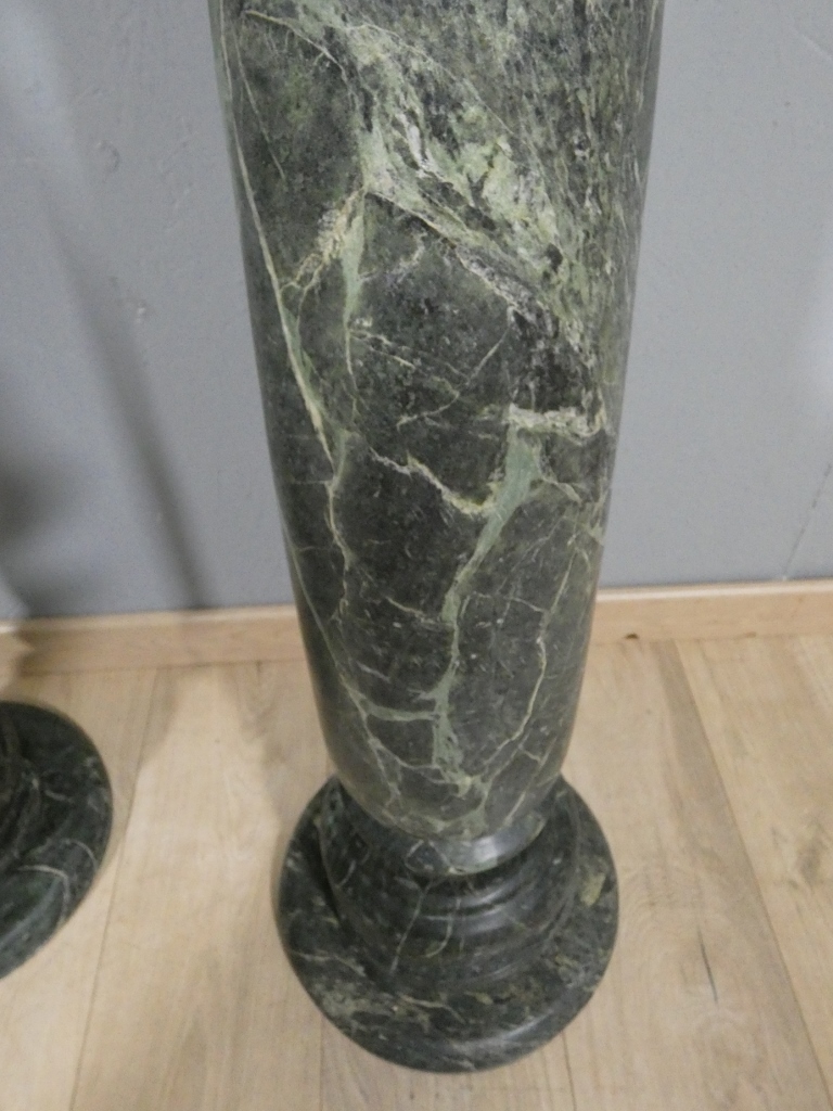 Paire de colonnes de présentation en marbre vert et laiton, époque milieu XX ème